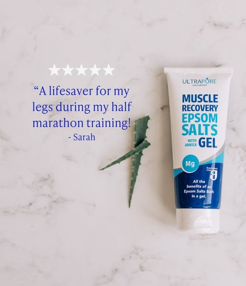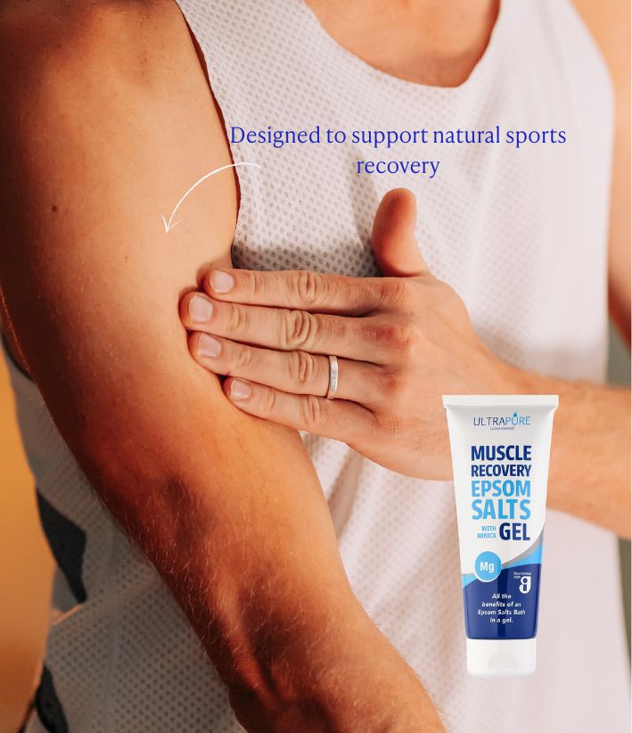 Irish-made, Ultrapure Epsom Salts Gel is a fragrance-free, topical gel infused with Arnica and Aloe Vera designed to support natural sports recovery. An ideal muscle gel to soothe sore, tired and aching muscles. Enjoy all the benefits of an Epsom Salts bath in a gel.